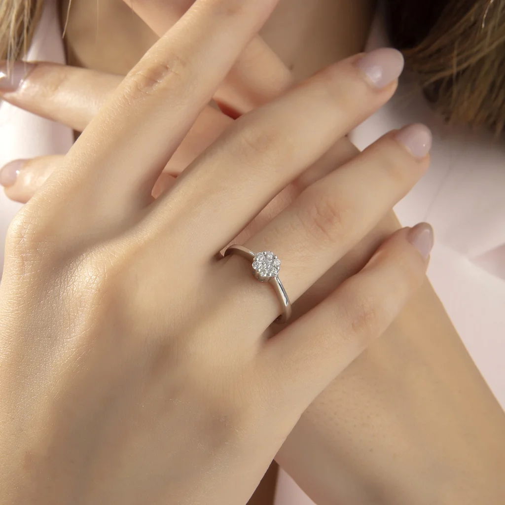 Pırlanta yüzüğümüz, pırlantaların ahenkli bir şekilde bir arada konumlandırılmasıyla tek taş ışıltısına yakın bir görünüm sunuyor. Ancak bu yüzük sadece bir mücevher değil her bir pırlantasına bireysel anlamlar yükleyebileceğiniz, duygusal bir değeri temsil eden muhteşem bir tercih.