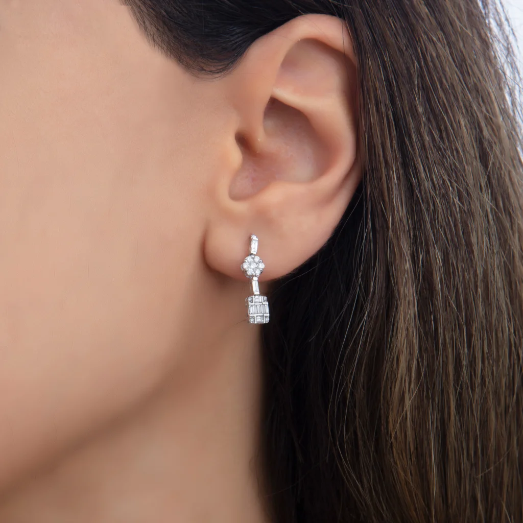 0.82 Ct F Si 2.15 gr 14 K JWD Pırlanta Baget Küpe