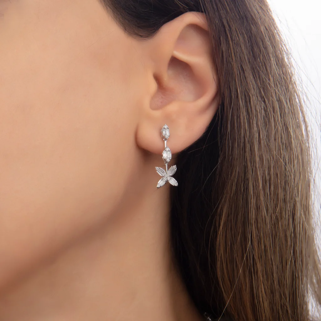 0.51 Ct F Si 1.62 gr 14 K JWD Pırlanta Baget Küpe