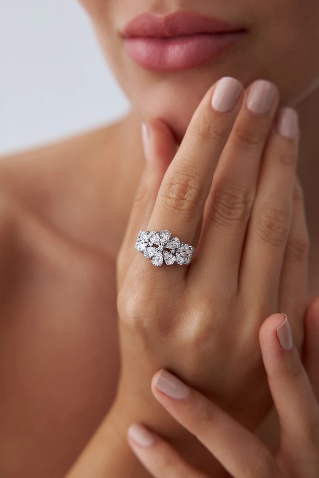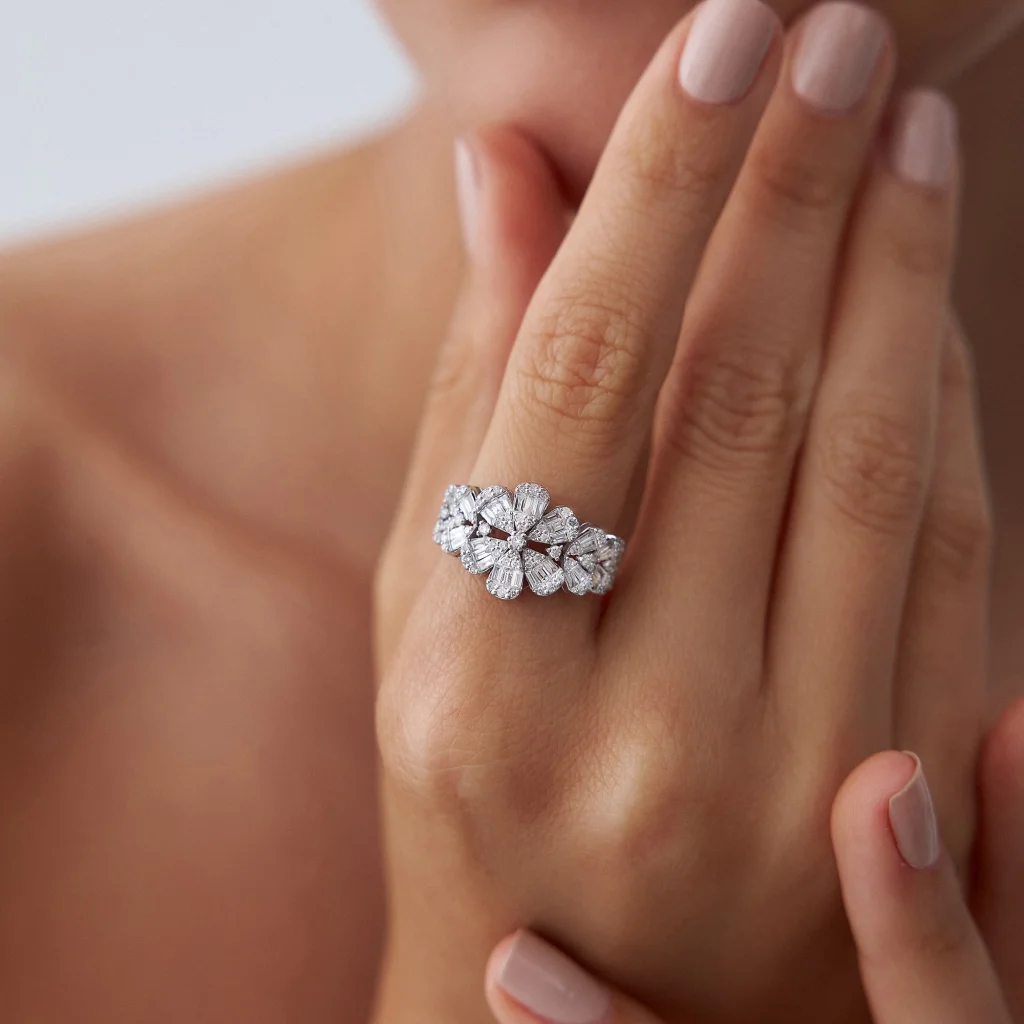 Bu özel tasarım mücevher farklı boyutlarda kesilmiş birçok berrak pırlantanın simetrik bir düzenle zarifçe yerleştirildiği, doğanın mucizesini andıran bir harikadır. Mücevherin genel formu bir kar tanesinin eşsiz ve hassas yapısını yansıtıkmakta ve her bir pırlanta, ışığı farklı açılardan yansıtarak kar tanesinin benzersizliğini ve kusursuzluğunu simgemektedir.